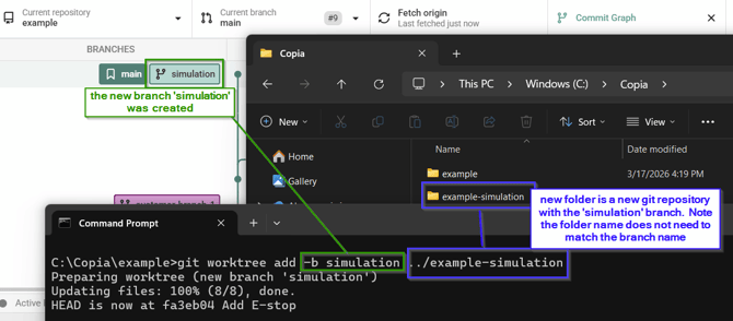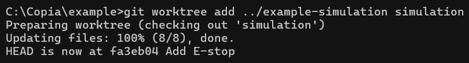 (7) When finished, use git worktree remove ../example-simulation to delete the worktree. Note: do this from the main folder (example not example-simulation)