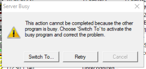 Users may encounter a “Server Busy – action cannot be completed because another program is busy” dialog when launching or using RSLogix Micro / RSLogix 500. This typically indicates that a dependent component (most commonly RSLinx or related services) is not responding or is blocked.